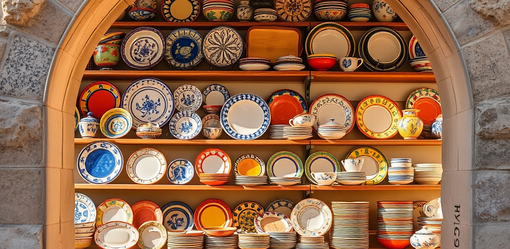 Vibrant Provencal ceramic tableware showcasing the rich colors of handmade plates from the South of France.