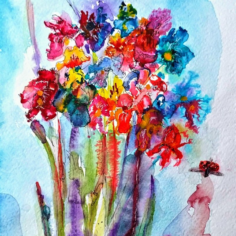 Wildflowers. Red Thistle and Madrid. Still life and urban sketching. Part 2.