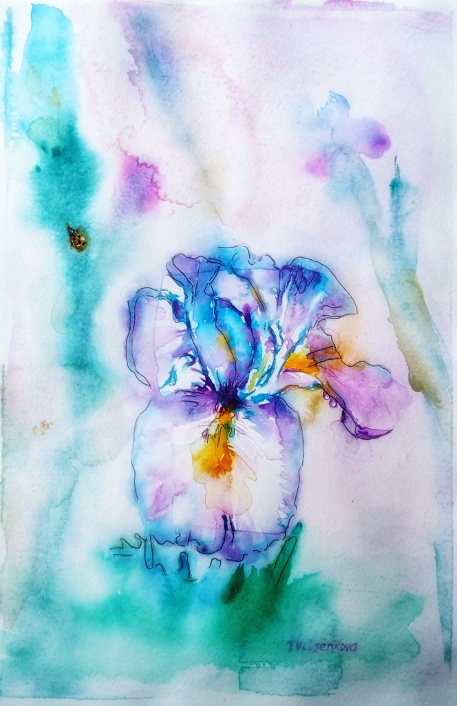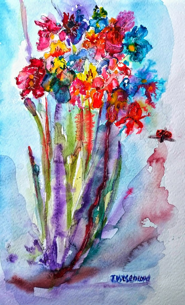 How? I will share my experiments with this magic technique. You need two brushes. Choose two of your favorite watercolor paints. Get some watercolor paper (300 g). Put on your favorite music with headphones. Most importantly, make sure you have time. Close your eyes and paint with two brushes, completely spontaneously!